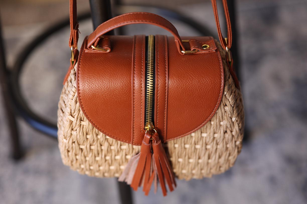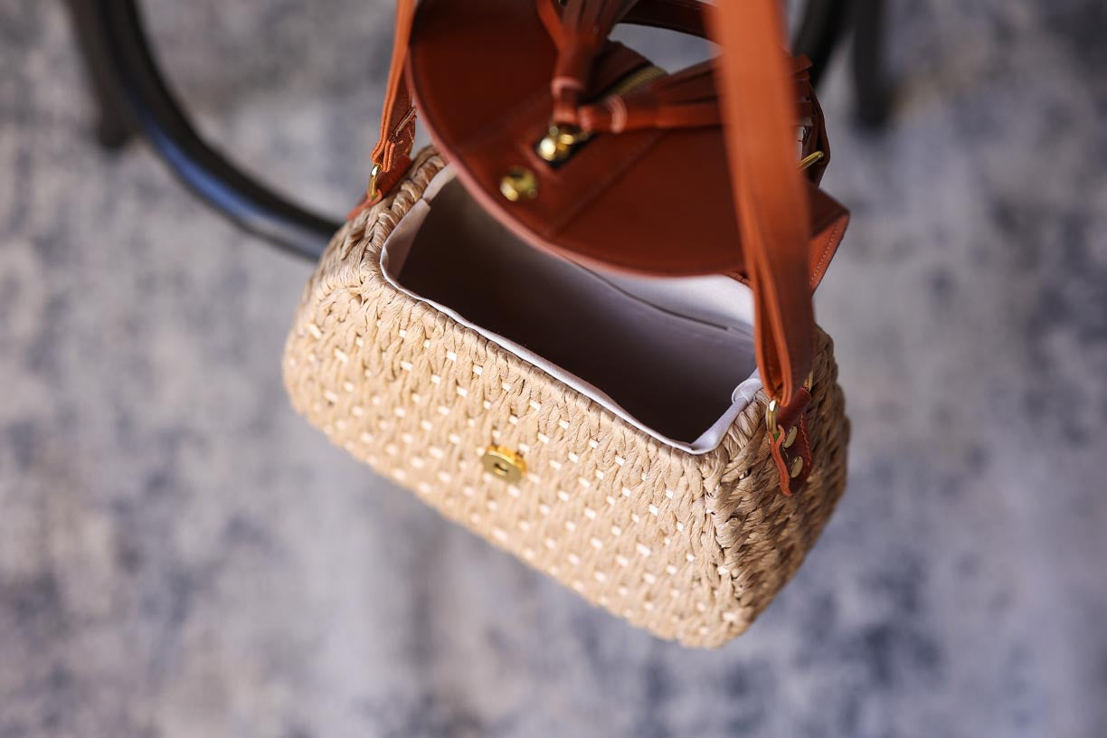 Khaki Bamboo Weaving Leather Shoulder Handbag Purse