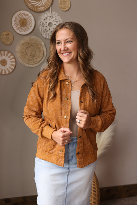 Level up your layering game with this khaki vintage washed shacket that effortlessly blends timeless style with modern edge. My fave!