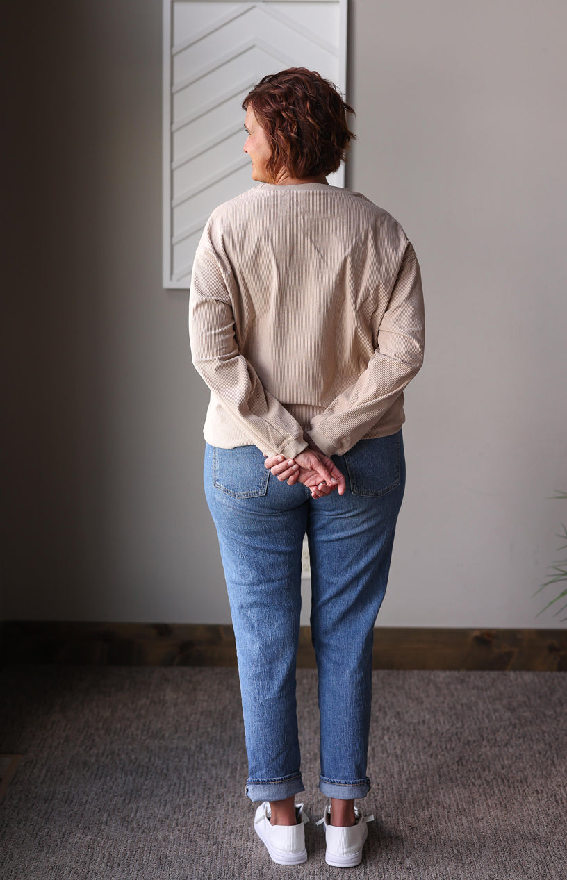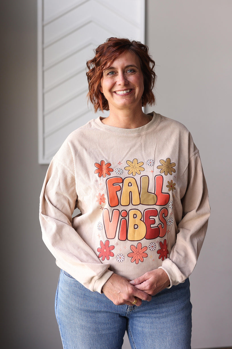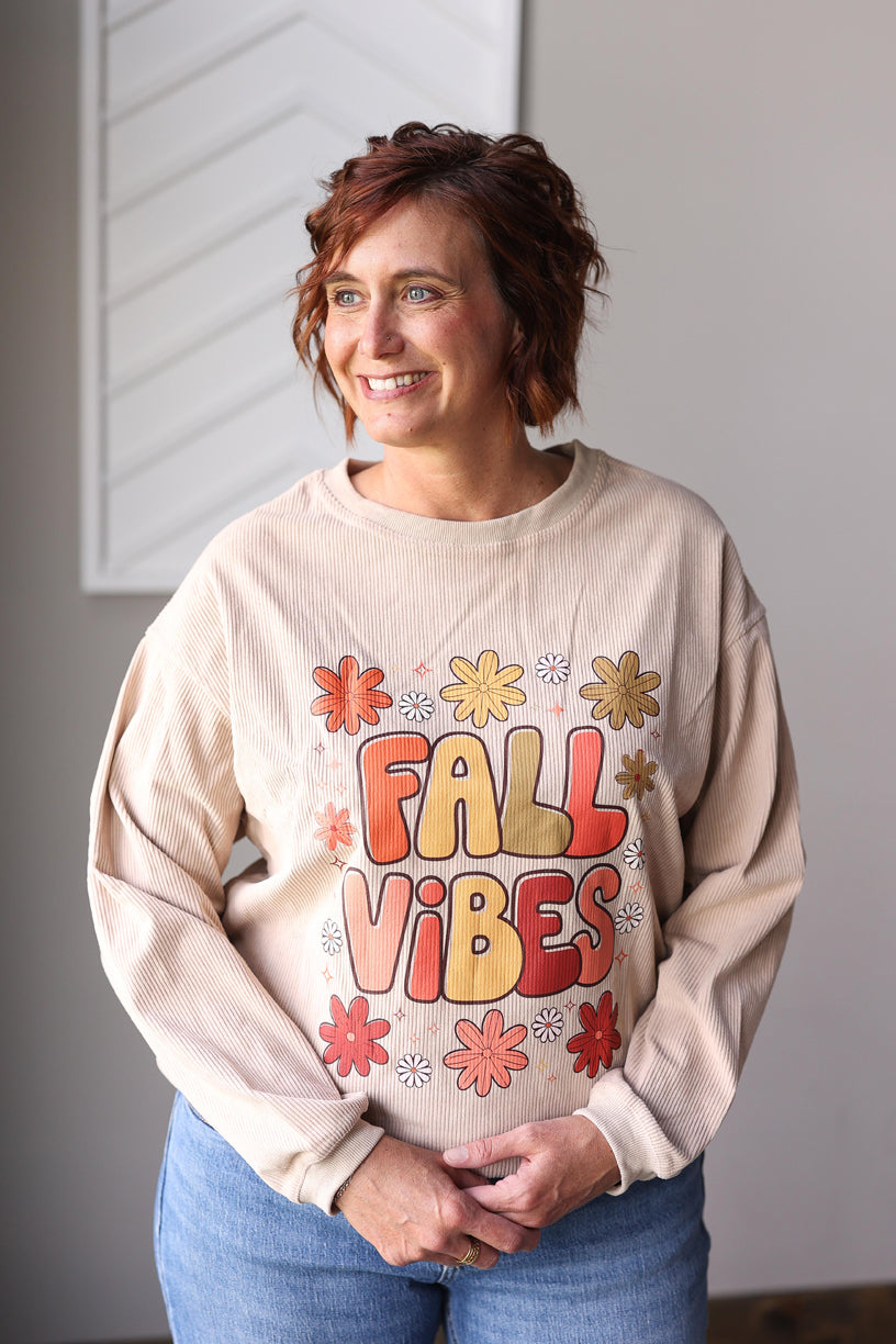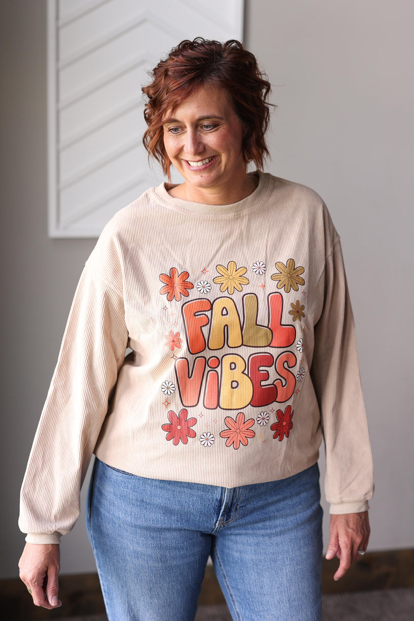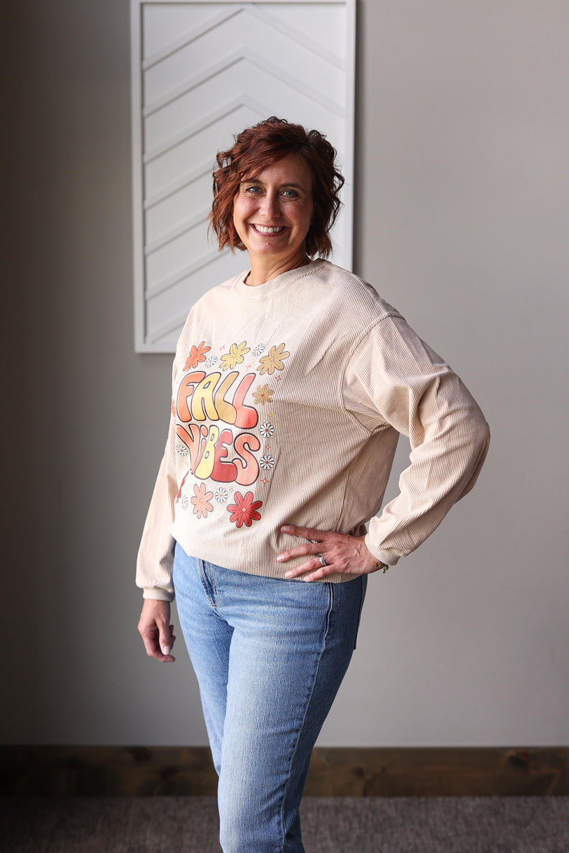 Fall Vibes Ribbed Sweatshirt Top, S or Lg