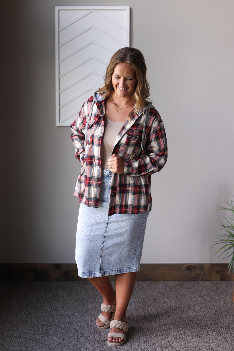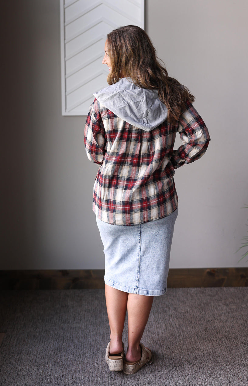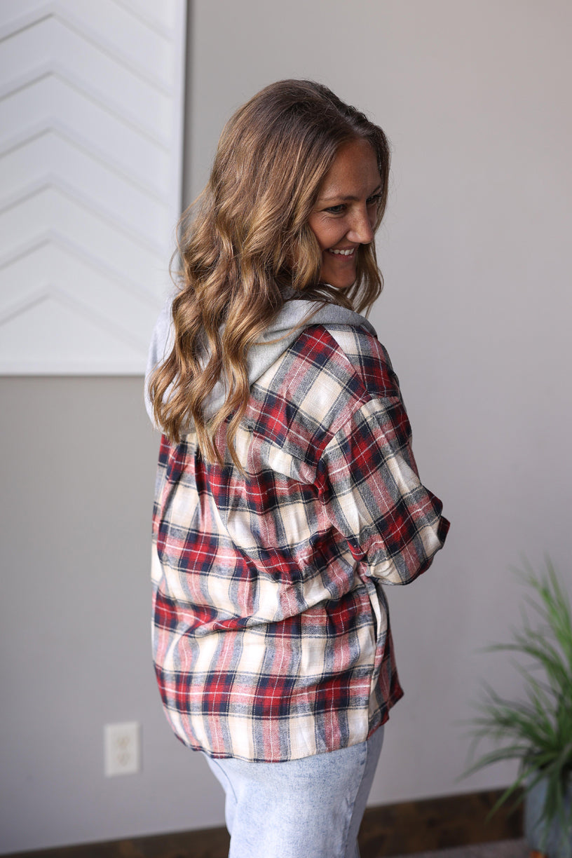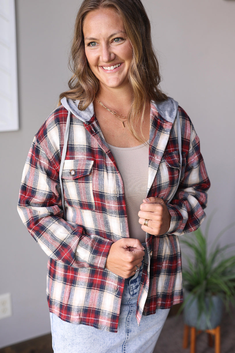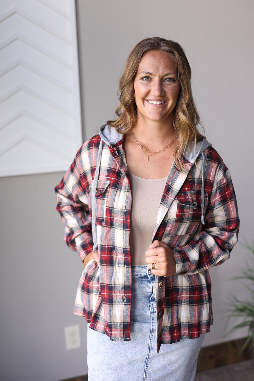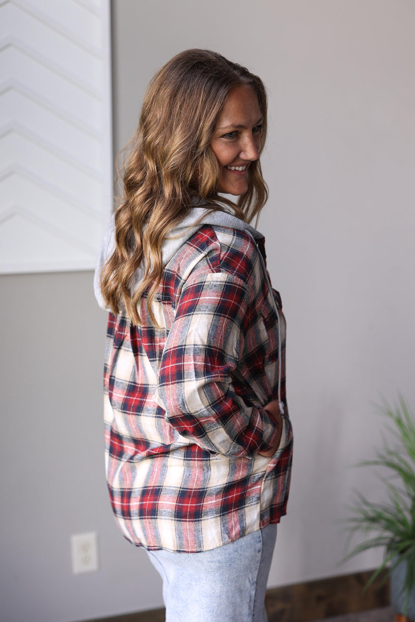 PRE-ORDER ONLY: Hooded Red Plaid Flannel Top