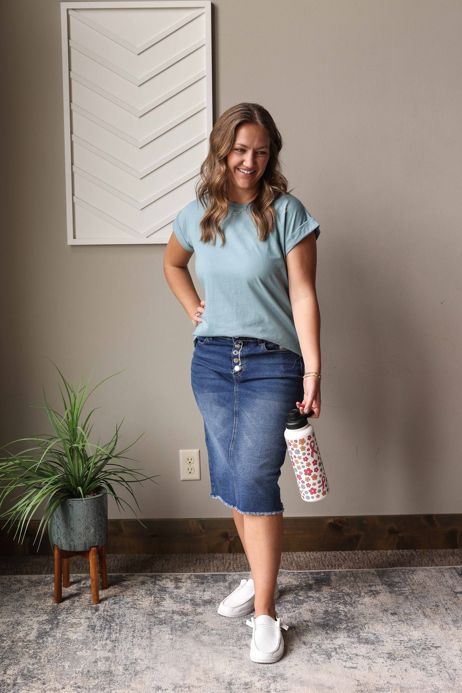 This skirts are amazing! They fit in all seasons of life, pregnant and also when not! Love how they can be dressed up or casual with a tee shirt!