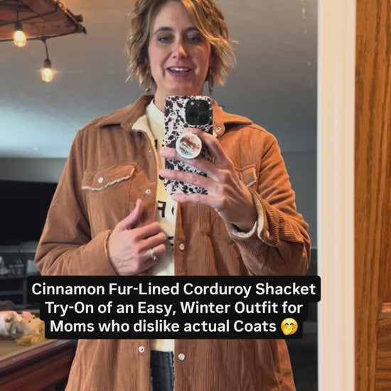 Cinnamon Fleece Lined Corduroy Shacket – the cozy layer every mom needs this season.
