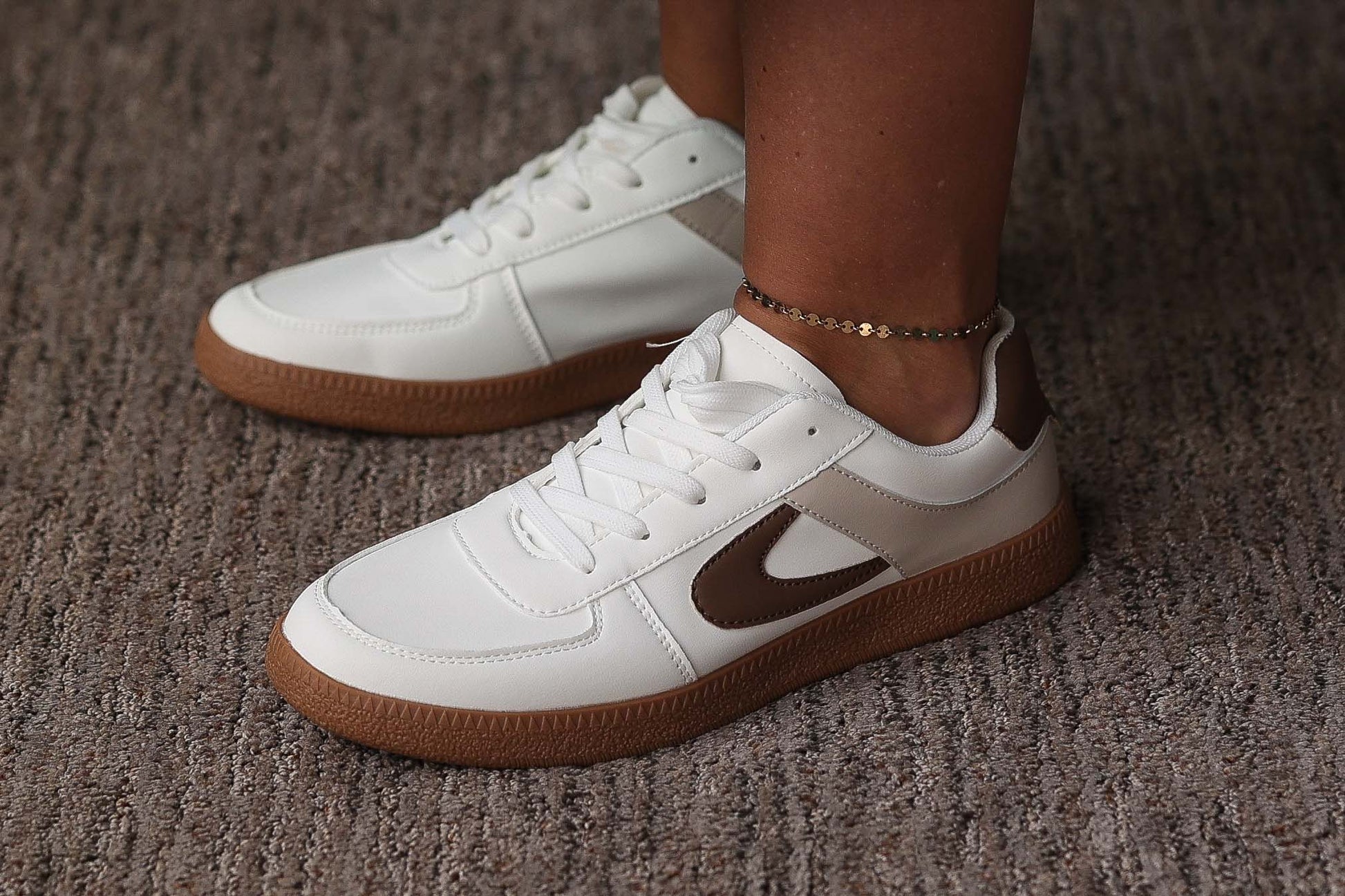 Add a cheerful touch to your everyday look with our Coffee Color Contrast Sneakers in warm, neutral tones.