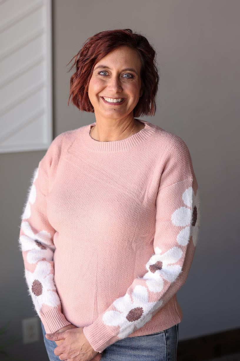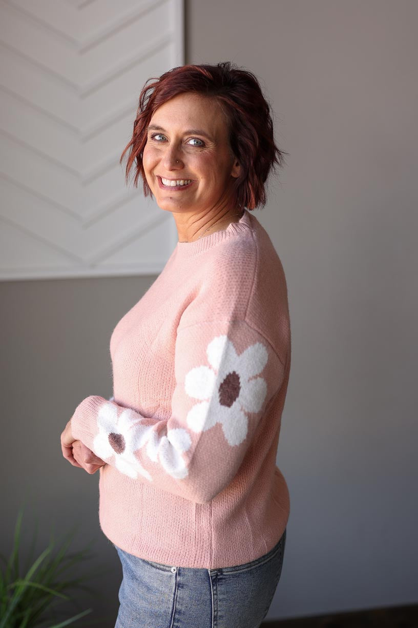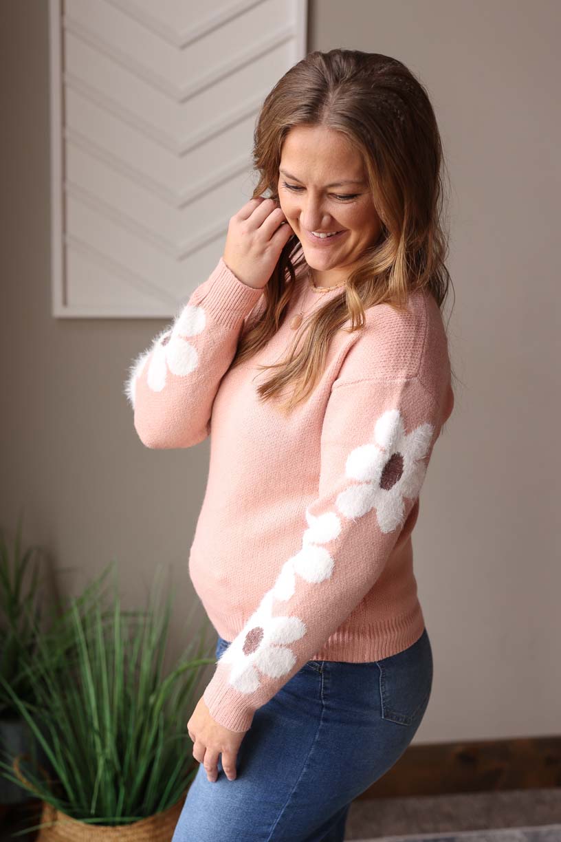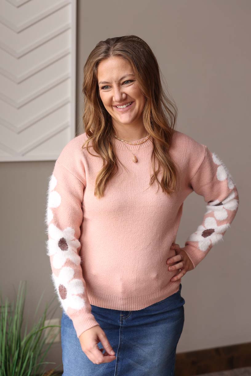 Stay warm and stylish with our Dusty Pink Flower Sleeve Sweater! Combining simplicity and cuteness, this sweater is the perfect addition to your wardrobe. Its cheerful design will brighten up your day while keeping you cozy. Say goodbye to cold temps and hello to effortless fashion!