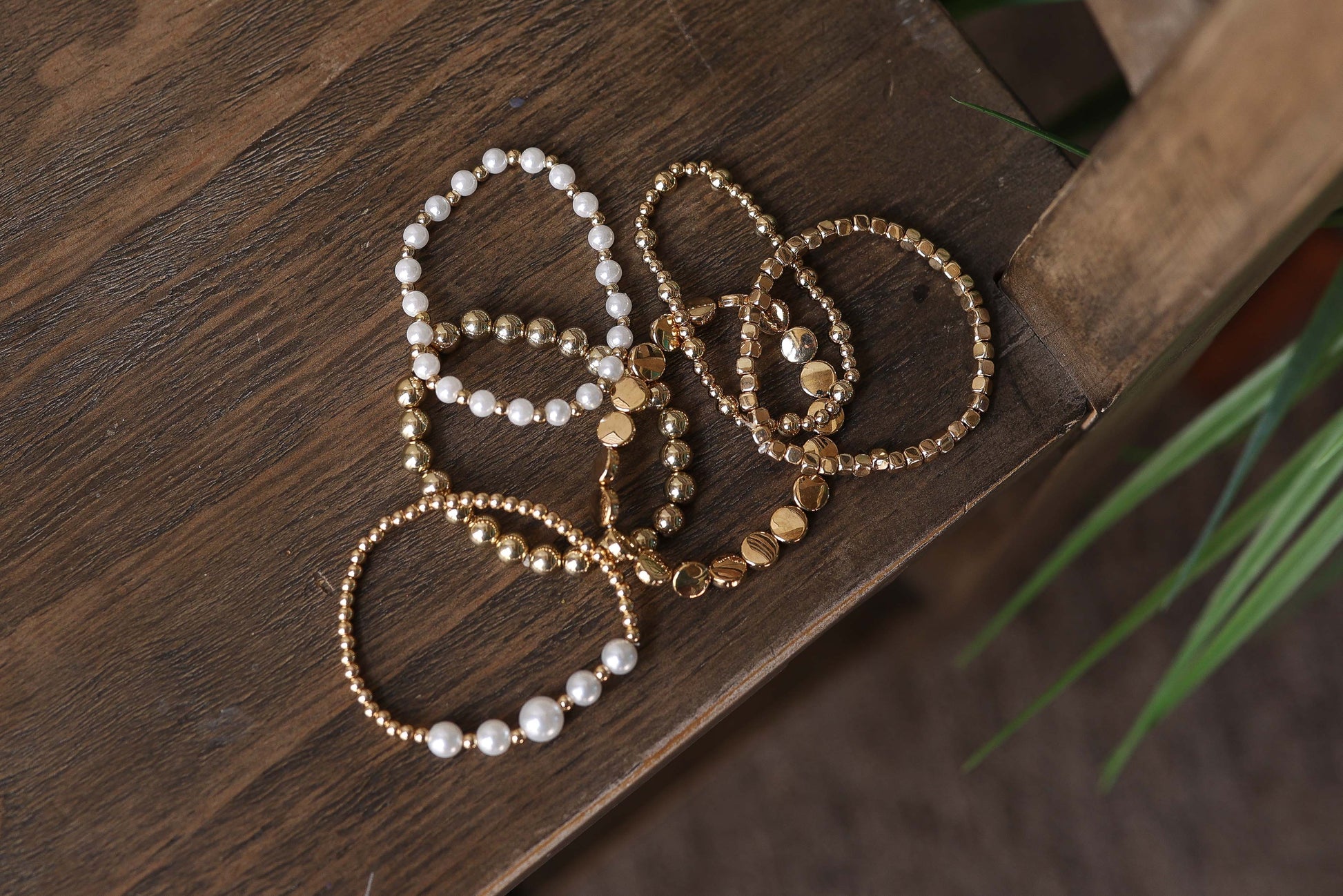 Gold Pearl Beaded Multi Layer Elastic Bracelets for Effortless Outfit Glow up โจ