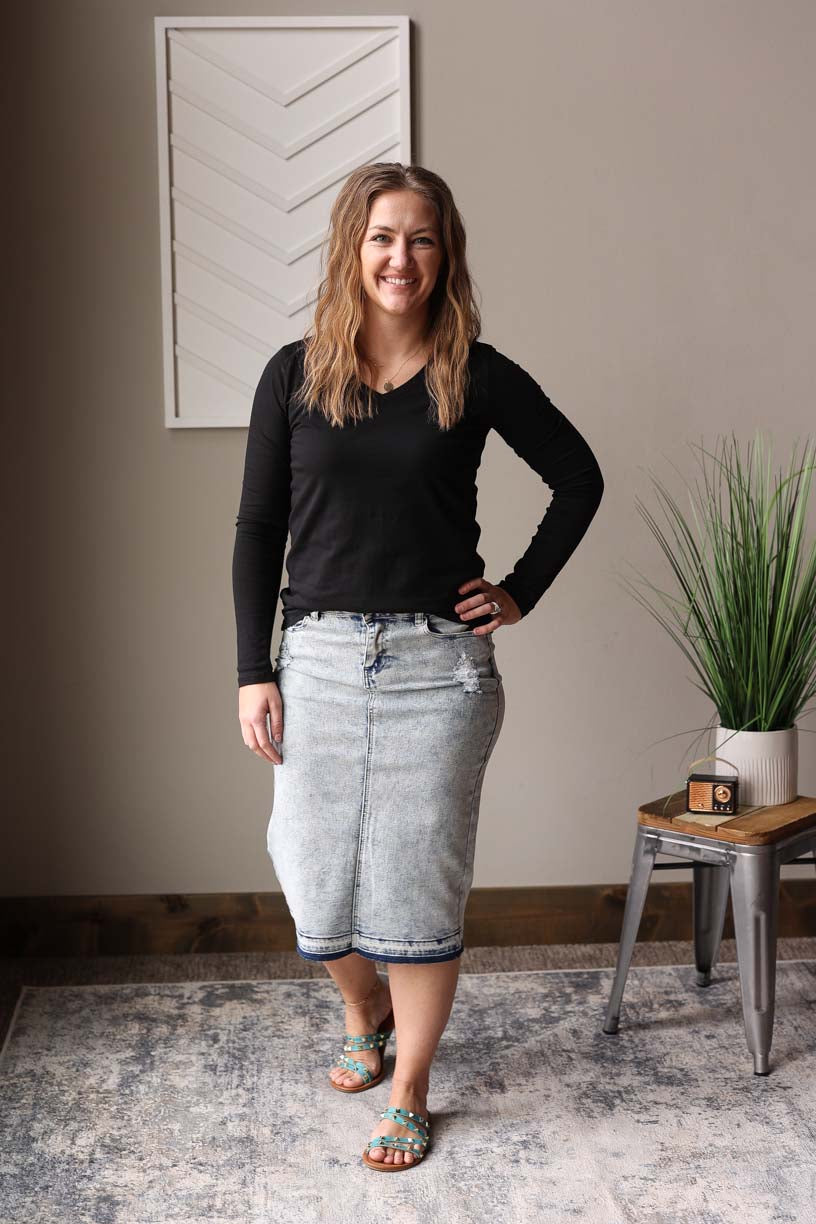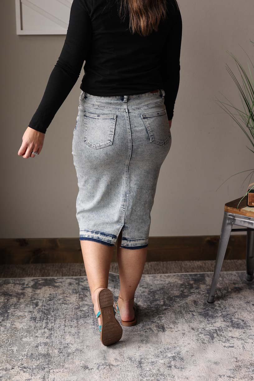 Spruce up your summer wardrobe with our Light Blue Mineral Wash Denim Skirt! The on-trend mineral wash adds a playful touch to this casual piece, while the cute back pockets add functionality. Perfect for all your summer adventures.